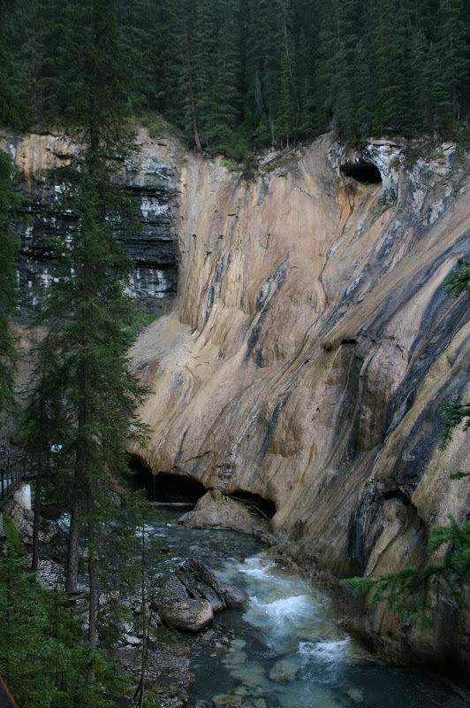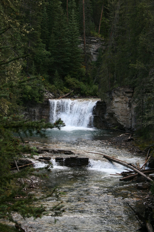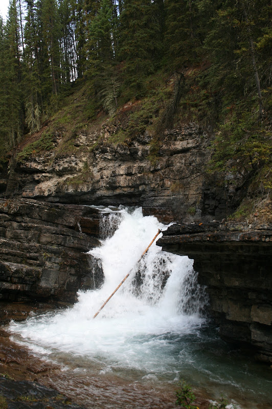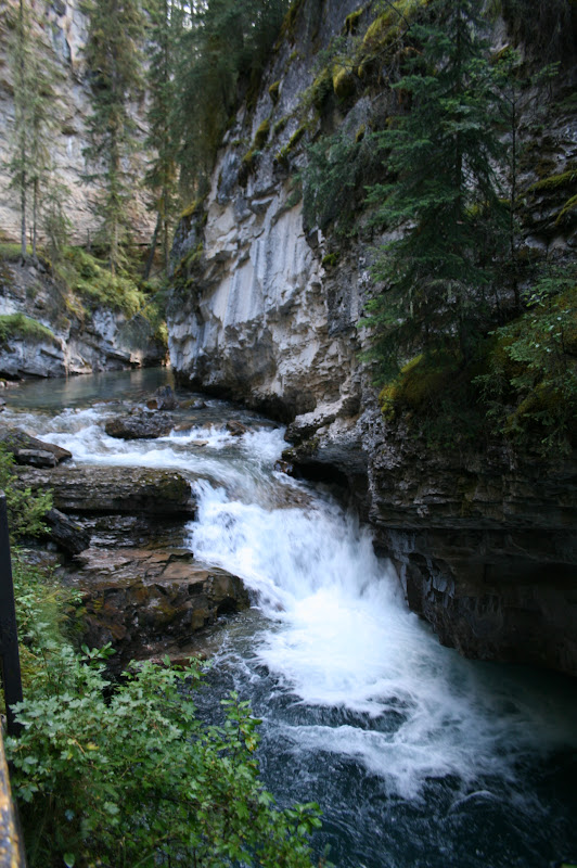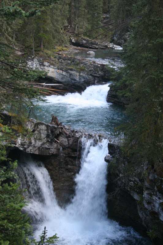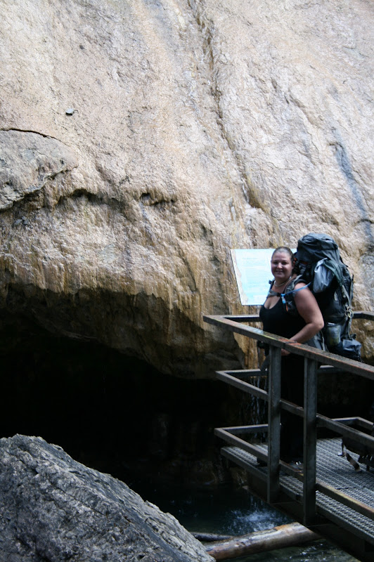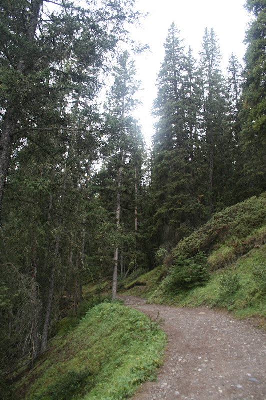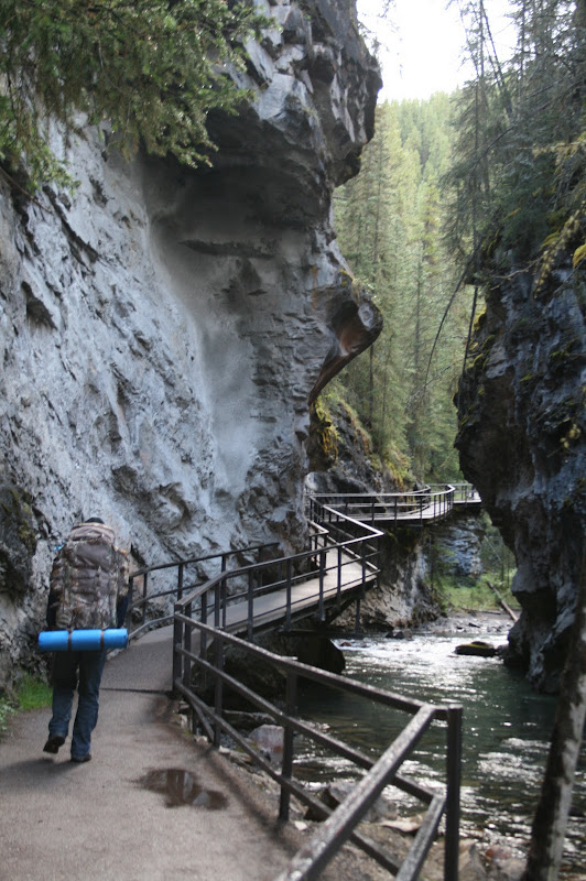 I’m sure we looked pretty funny with our tiny backpackers stove in the middle of the parking spot next to us, decked out in our rain gear and toques. It was already drizzling and the forecast was abysmal, so with somewhat reserved optimism, Mike and I set out on the first leg of the hike, which was a 2.7 km stretch of catwalks and paved trail that led past a series of waterfalls. We hit the trail at 8:30 am.